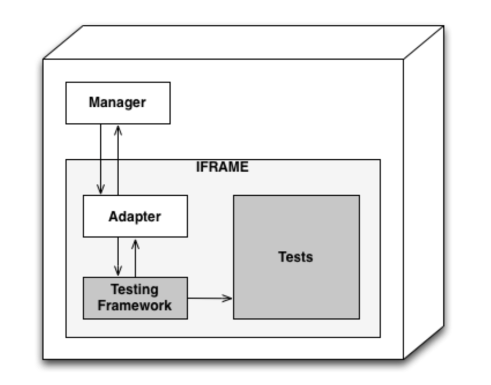 컨텍스트 페이지(context.html)에 포함된 테스트 프레임워크 어댑터를 기반으로 테스트 코드가 실행되고,