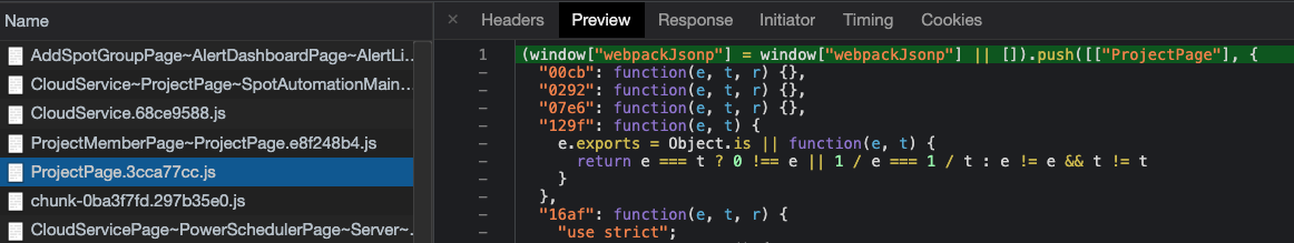 ์๋ฒ ํ์ด์ง๋ก ๊ฐ๋ค๊ณ ํด์ ์๋ฒํ์ด์ง๋ง ๋ก๋ํ๊ฒ ์๋๋ผ, ์๋ง๋ ๊ทธ ๋ผ์ฐํธ ์ ๋ณด๋ฅผ ๊ฐ์ง๊ณ ์๋ ๊ฒ์ผ๋ก ์ถ์ ๋๋ CloudServicePage~....js ํ์ผ์ ๋จผ์ ๋ก๋ํ ๊ฒ์ ํ์ธํ ์ ์๋ค.