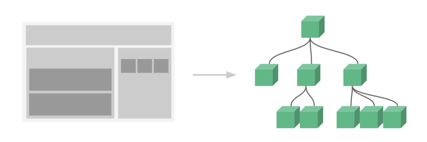 각각의 컴포넌트들은 트리구조로 이루어져 있으며, 서로 상호작용을 하여 애플리케이션 서비스를 이룬다.