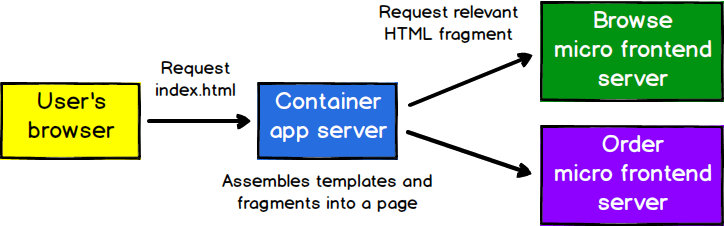 독립성을 높이기 위해, 각 마이크로 앱들을 렌더링하고 서비스하는 별도의 서버가 있을 수 있으며, 한 서버는 한 마이크로 앱에 요청을 한다. 또한 응답 캐싱을 통해 지연 시간에 영향을 주지 않고 작업을 수행하도록 할 수 있다.